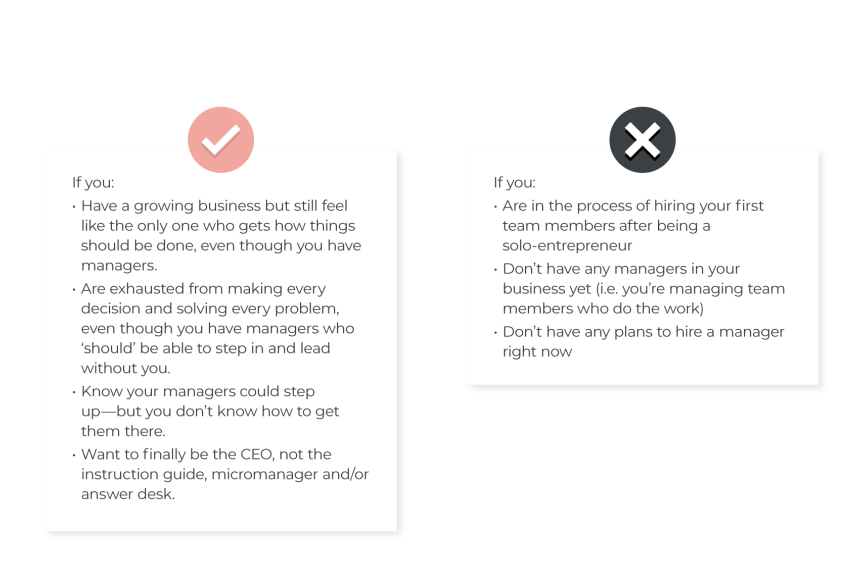 Goal: Change how you lead so your managers change how they lead. Shift from being the problem-solver to the leadership architect of your business.